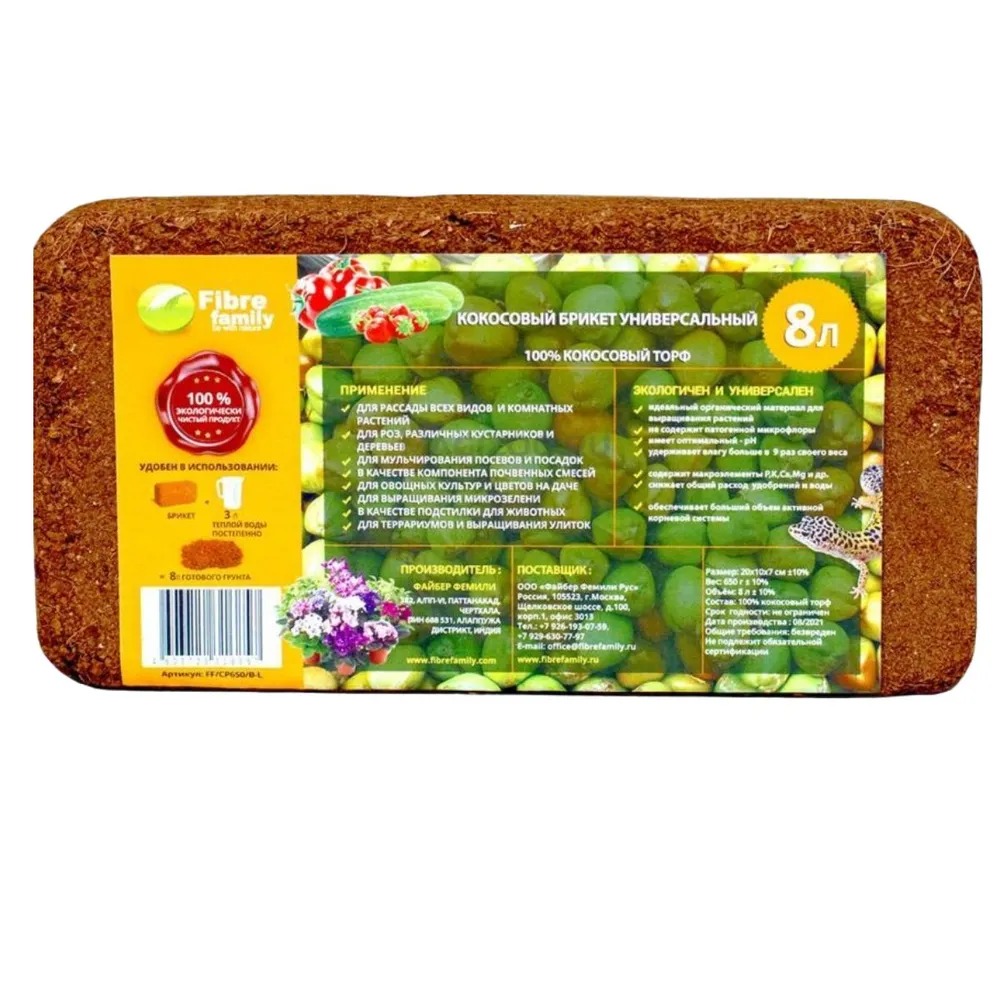 Субстрат кокосовый 9л (650г) Agros (Факториал) 4/24