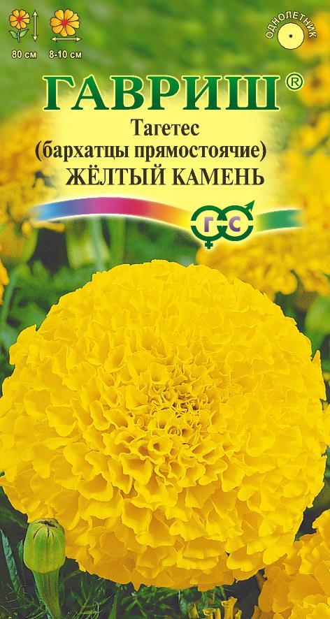 Однолетнее растение семейства Сложноцветные. Образует куст высотой 80 см. Соцветия крупные (диаметром 8-10 см), густомахровые, шаровидные, золотисто-желтой окраски. Цветет с июня до заморозков. Бархатцы светолюбивы и теплолюбивы, предпочитают умеренно плодородные легкие почвы. Посев на рассаду проводят во второй половине марта-начале апреля. Всходы появляются через 4-8 дней после посева, сеянцы пикируют в фазе 2-го настоящего листа. Рассаду высаживают в начале июня, расстояние между растениями 30-35 см. Посев в открытый грунт проводят в мае. Используют для посадки на клумбах, рабатках, бордюрах.