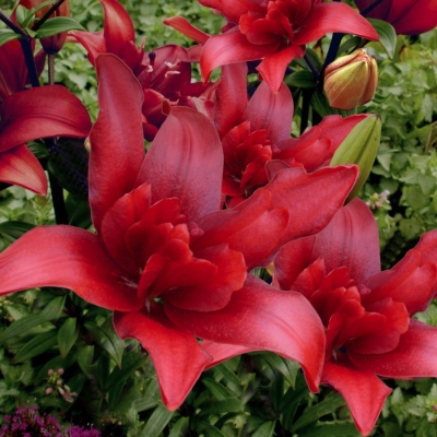 Лилия Азиатская.Эффектный махровый сорт винно-красного окраса. Высота растения 90-110 см, диаметр цветка 16-18 см. Аромат средне-выраженный. Цветение приходится на конец июня – июль.