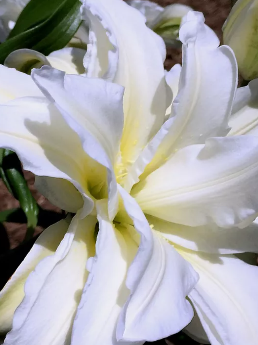 Лилия Боул оф Бьюти относится к восточным махровым гибридам. Цветки белоснежные, ароматные, диаметром 20 см. Куст высотой 120 см. Выглядит просто роскошно!