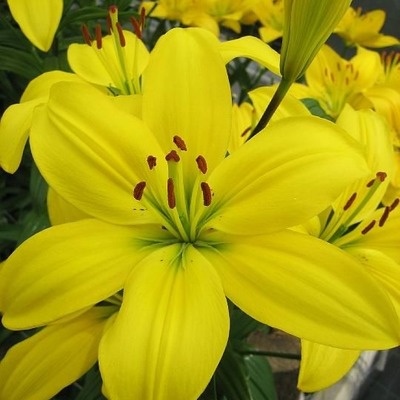 Лилия Mona азиатская. Разбор 12/14. Высота лилии 95 см. Цветок ярко-желтый с оранжевыми пыльниками, диаметр цветка 17 см.