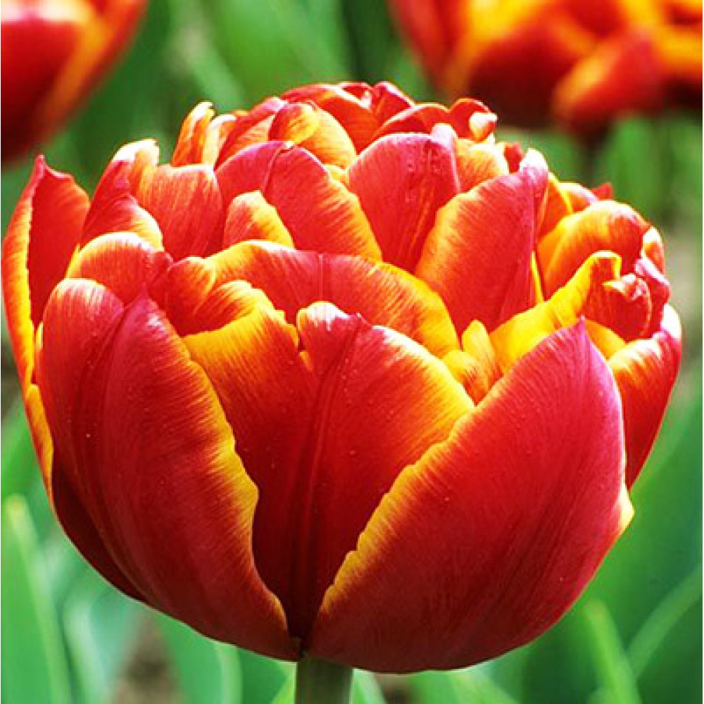Относится к группе Махровые поздние. Высота растения до 45 см. Цветок густомахровый, напоминающий цветок пиона (пионовидный). Размер бутона 6-7 см в высоту и 8-10 см в диаметре. Окрас цветка: винно-красный с желтой каймой по краю.Посадка - август, сентябрь, октябрь. Глубина посадки зависит от размера луковицы и её определяют как 3 высоты луковицы, если считать от её донца, а густоту - как 2 диаметра луковицы. Период цветения - май - июнь. Почва - нейтральная или известково - кислая. Использование махровых тюльпанов: декоративные посадки, срезка, ускоренная выгонка. К достоинствам махровых поздних тюльпанов можно отнести: долго не увядающие цветки, высокие крепкие цветоносы и сравнительно продолжительный период цветения, длящийся в среднем три недели.