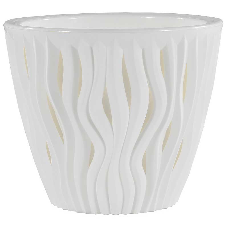 Выбор кашпо для растения – непростая задача для любителей комнатных цветов. Цветочные кашпо для растений из коллекции «Вдохновение» не оставят равнодушным ни одного человека! Кашпо с объёмной волнообразной текстурой идеально подходит для создания индивидуального дизайна с зелёными живыми растениями. Конструкция предусматривает удобные технологические ручки, которые упрощают уход (пересадка) за растением. Состоит из основного декоративного горшка и внутренней вставки с дренажными отверстиями. Наличие такой дренажной вставки обеспечивает отвод воды от грунта и позволяет дышать корневой системе растения. Кашпо окрашено в белый цвет, изготовлено из надёжного пластика, благодаря чему отличается прочностью, устойчивостью к ультрафиолету и перепадам температур. Объём – 3 литра.
